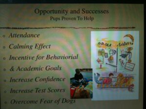 SuZanne Rogers and Bo Jolly, Gracie Girl’s brother, presented to Nebraska Statewide Teacher’s Conference for the Nebraska Middle Level Academy in support of ideas and innovations regarding Pet Therapy, Middle School Students and special tools such as Pawsitive Tails, Mentor Groups, Pups and MORE!